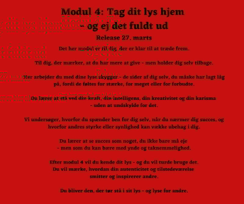 Du lærer at arbejde med både lys og mørke - og netop i balancen mellem de to ligger nøglen til varig forandring.